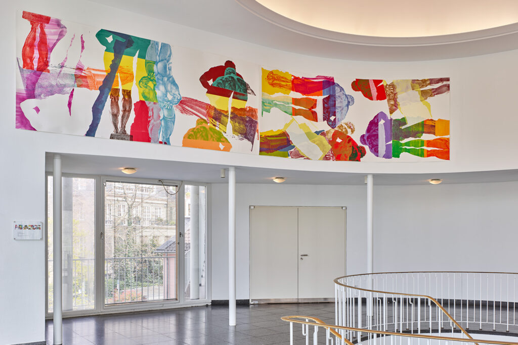 Künstlerverein Malkasten, Düsseldorf, 2023 – durch sieben siebe 2/3, 2023, 150 x 360 / 150 x 355 cm, Acryl und Siebdruck auf Rein Hadern Zeichenpapier 270g, Foto: Achim KukuliesUniversitätsspital Zürich, B1, 2003, Öl und Siebdruck auf Holz / oil and silkscreen on wood, 100 × 240 cmUniversitätsspital Zürich, A3, 2003, Öl und Siebdruck auf Holz / oil and silkscreen on wood, 100 × 300 cmUniversitätsspital Zürich, A2 / A4, 2003, Öl und Siebdruck auf Holz / oil and silkscreen on wood, je 100 × 210 cmUniversitätsspital Zürich, U2, 2003, Öl und Siebdruck auf Holz / oil and silkscreen on wood, 100 × 300 cmdurch sieben siebe, Ausstellungsansicht Kunsthaus Baselland, 2022, Foto: Gina Follydurch sieben siebe, Ausstellungsansicht Kunsthaus Baselland, 2022, Foto: Gina FollyMinisterium für Bauen und Verkehr, Düsseldorf, 2010 m3, 2010, 535 x 271 cm, Ölfarbe und Siebdruck auf Holz, Foto: Achim KukuliesKünstlerverein Malkasten, Düsseldorf, 2023 – durch sieben siebe 2/3, 2023, 150 x 360 / 150 x 355 cm, Acryl und Siebdruck auf Rein Hadern Zeichenpapier 270g, Foto: Achim Kukuliesm3 2009/10, Öl und Siebdruck auf Holz / oil and silkscreen on wood, 535 × 271 cm